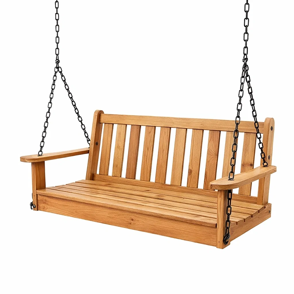 Balancelle de porche en bois avec chaînes en métal