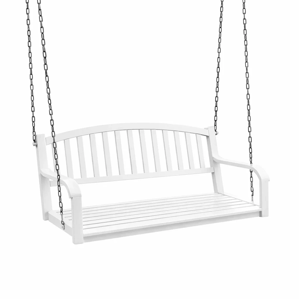 Balancelle de porche en bois composite blanc avec chaînes