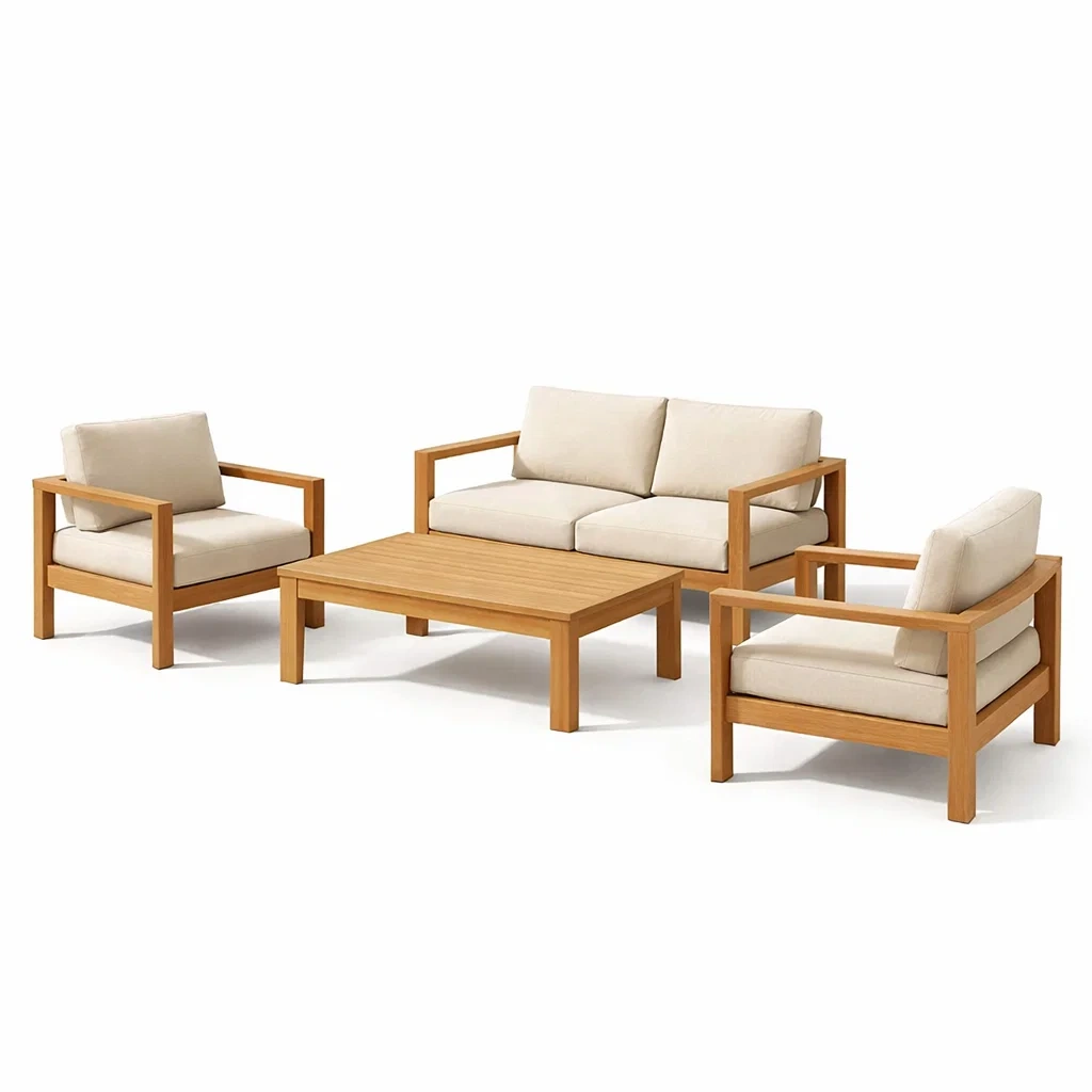 Matériau : Structure en bois, coussins en tissu polyester beige